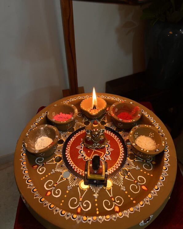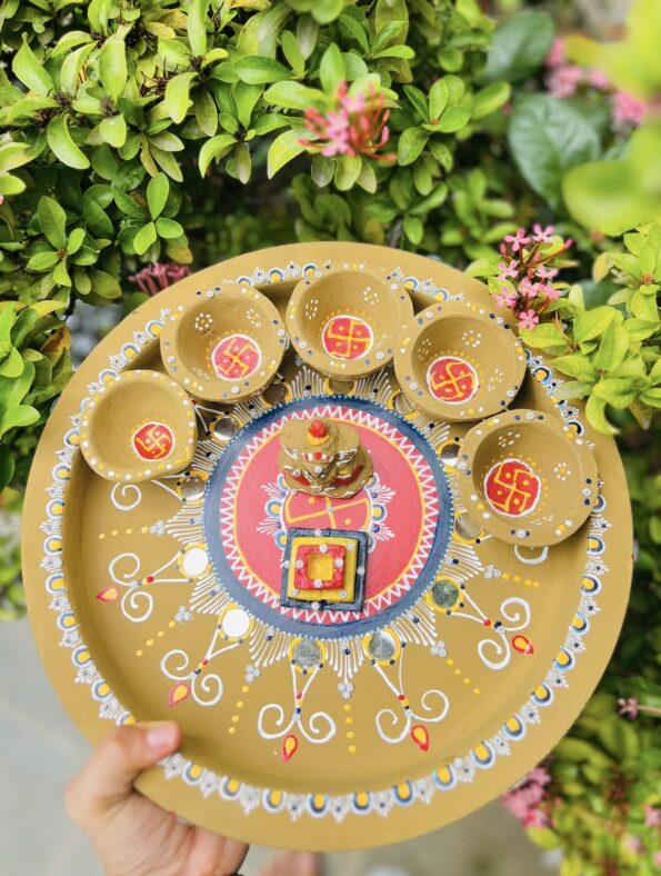 Elevate your daily rituals with our eco-friendly Aarti Thali, handcrafted from pure, sun-dried cow dung. Rich in traditional value and deeply rooted in Indian culture, this thali naturally purifies the space and adds a divine touch to your puja. A sustainable and spiritual alternative to metal or plastic thalis — perfect for festivals, daily worship, and spiritual gifting.